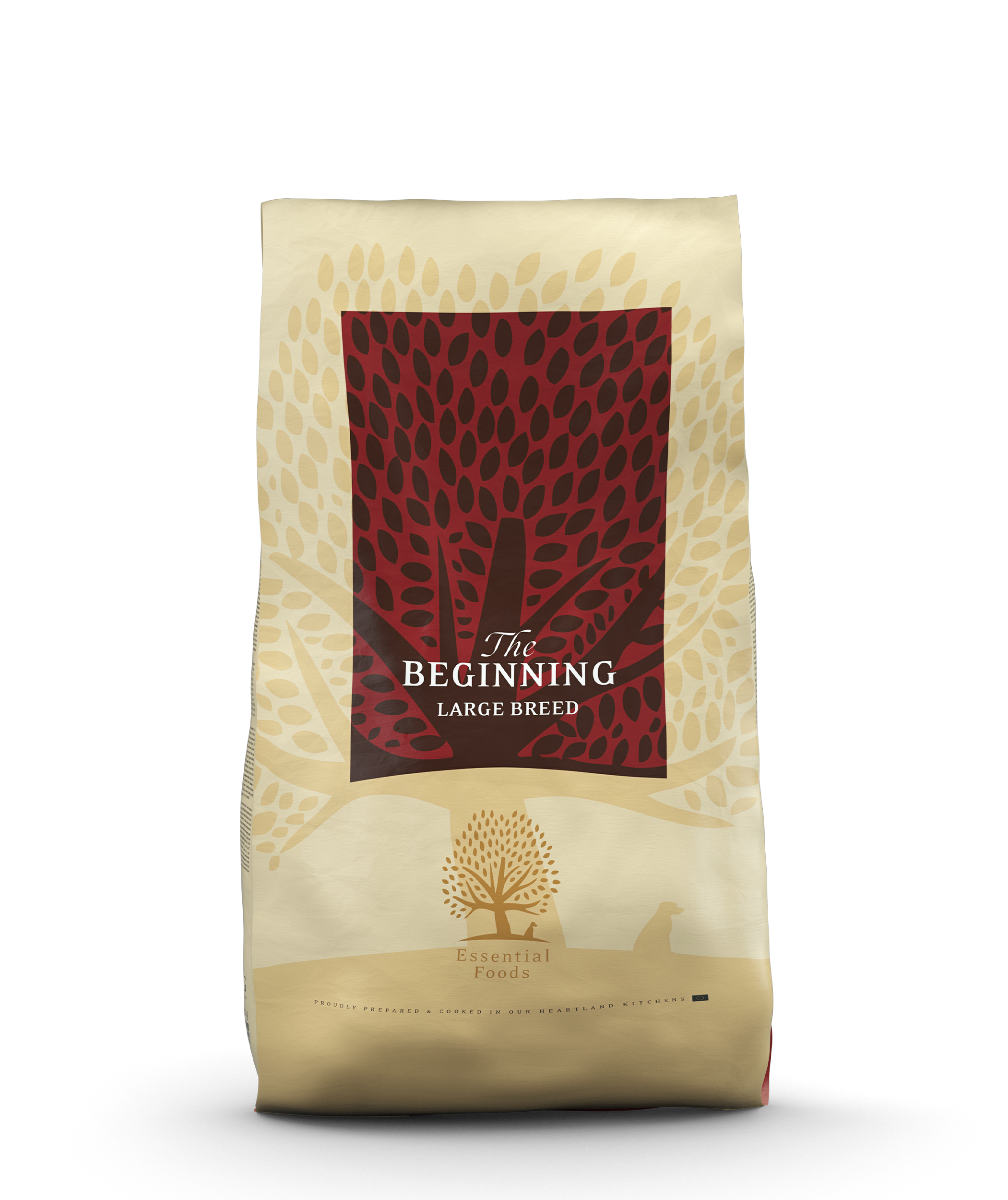 The BEGINNING Large Breed fra Essential Foods Finest British Heritage Kitchens er et luksuriøst og skræddersyet kornfrit måltid til hvalpe, der som voksne forventes at veje over 15 kg.