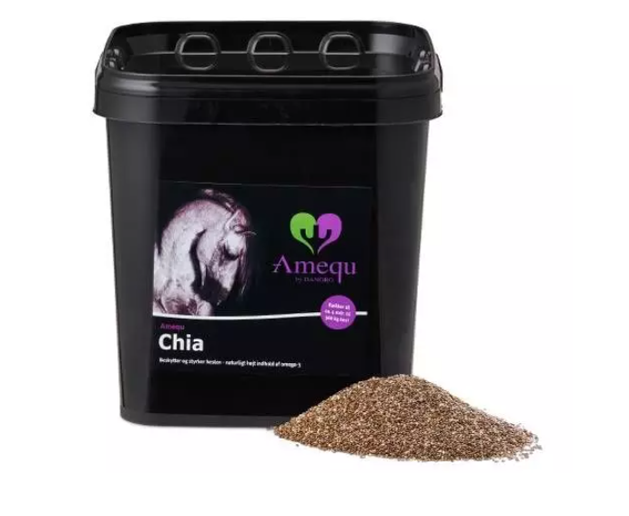 Amequ Chia er økonomisk i brug. En 3 kg spand rækker til ca. 2 måneder for en 500 kg hest.