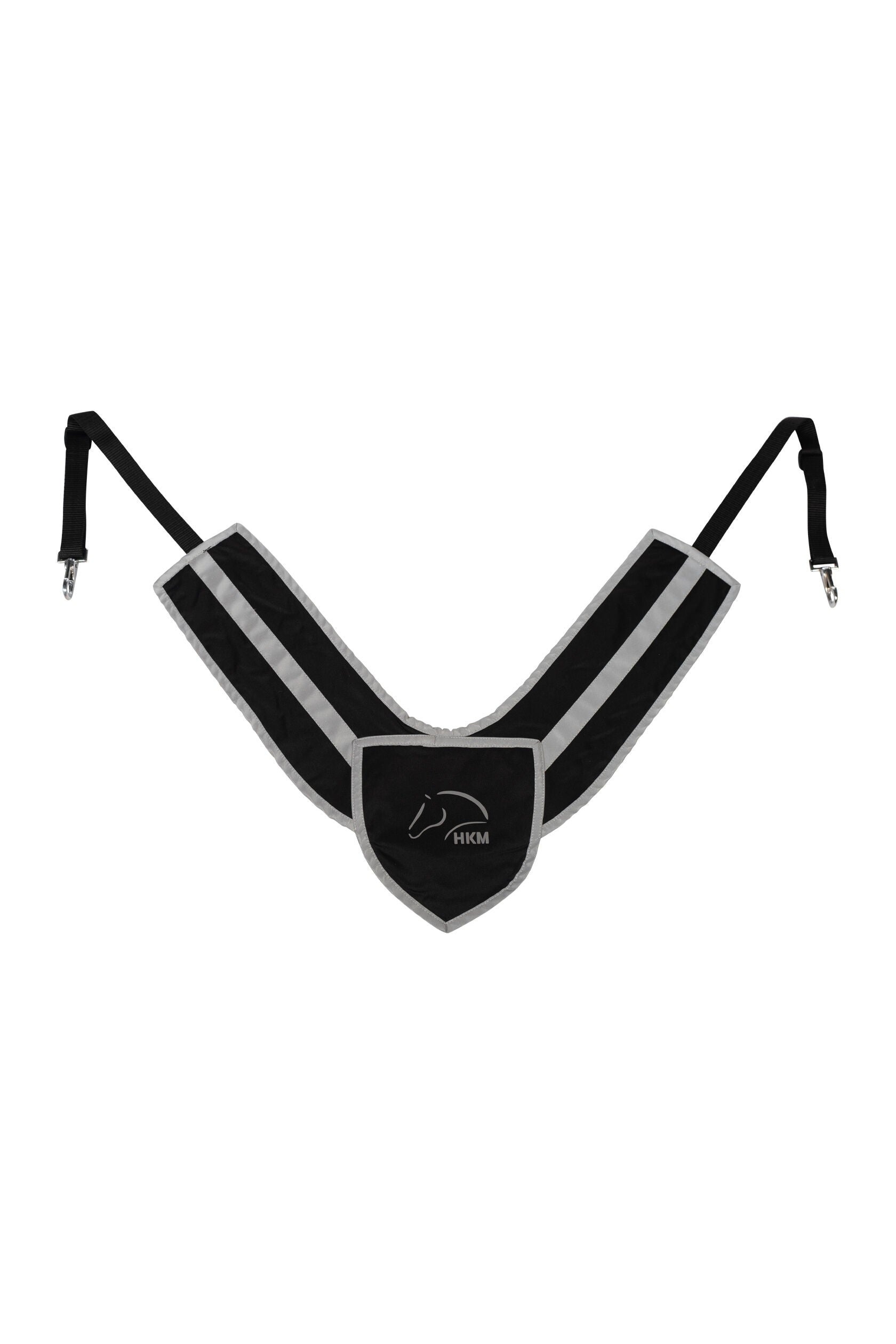 Hold din hest sikker og synlig med HKM's reflekterende fortøj, Dette V-formede bryststykke er udstyret med reflekterende materialer, der sikrer synlighed når du rider i de mørke timer. Med justerbare stropper kan dette fortøj tilpasses enhver hests størrelse og form.